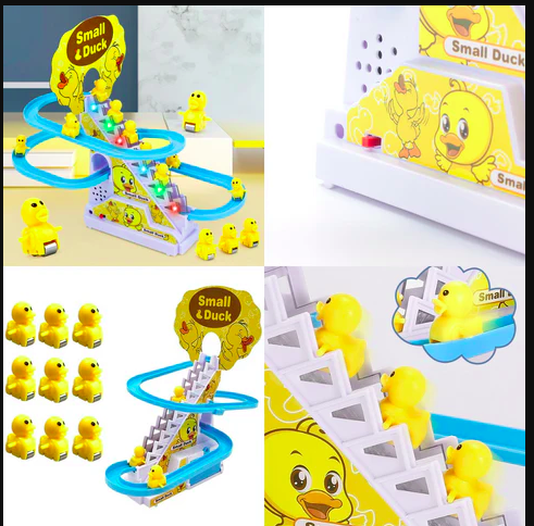 Small Duck Climbing Stairs Toy – Electric Ducks Chasing Race Track Game Set